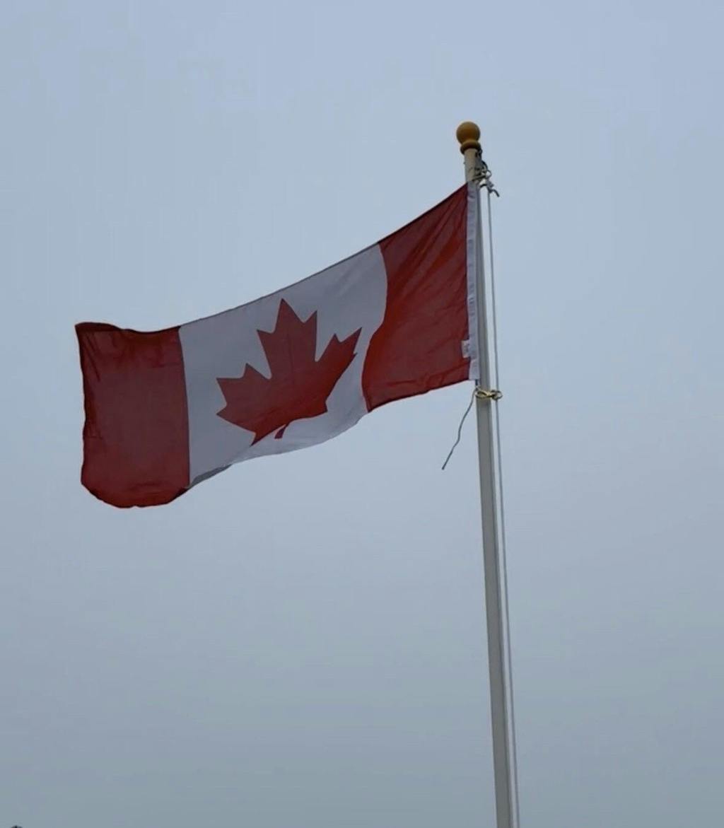 Sure enough the flag has been up the flagpole for about a week now, under very windy conditions. It is still in one piece and flying proudly along the shores of the St Lawrence River.